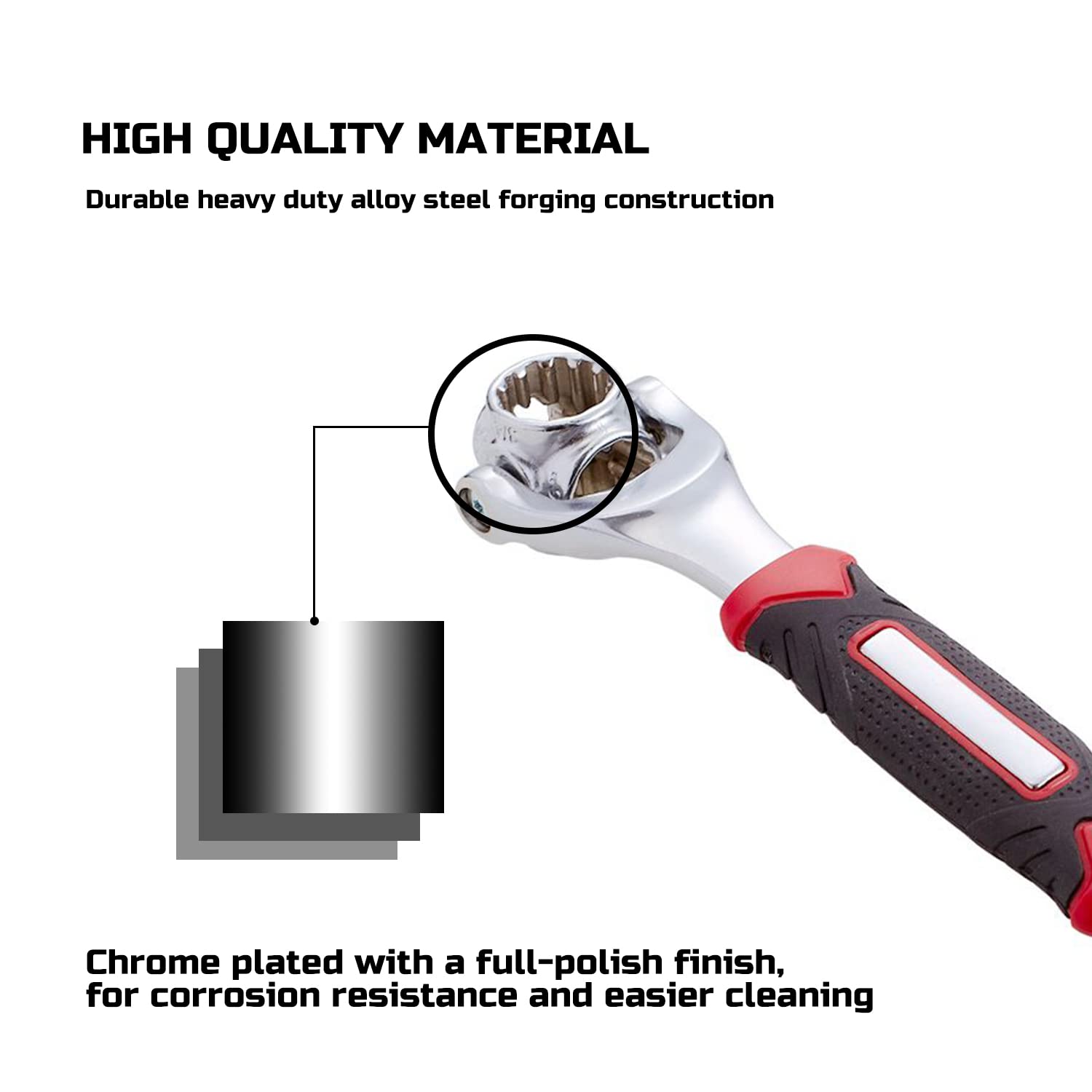 This Professinal-Grade Sookcet Wrench is Designed with Two 360 Degree Rotating Heads.