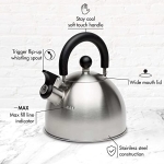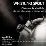 • EASY TO USE- This kettle will boil water in no time and features a flip-up whistling spout that easily opens when it’s time to pour.